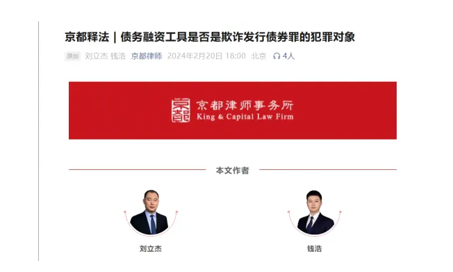 2. “King&Capital Law Firm Legal Interpretation | Are Debt Financing Instruments the Subject Matter of the Crime of Fraudulent Issuance of Bonds?”