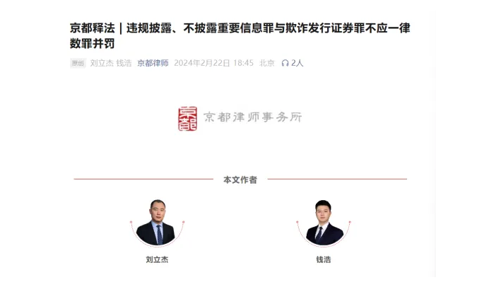 1. “King&Capital Law Firm Legal Interpretation | Crimes of Improper Disclosure or Failure to Disclose Material Information and Fraudulent Issuance of Securities Should Not Always Be Treated as Cumulative Offenses”