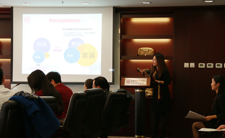 首先,品牌建设主管孟妮女士介绍所刊《京都律师》。京都律师事务所的所刊——《京都律师》已经有十余年的历史,迄今为止共出版了109期,这本内刊由专业人士设计、制作,体现了京都律师事务所和京都律师群体的专业素质、服务精神。《京都律师》每期封面内容以当下最热门的法律问题为核心,结合京都律师的丰富经验展开论述,加上《京都实务》、《京都论法》、《律师生活》等栏目,展现了京都大气、沉着的律所文化和深厚的法律底蕴。