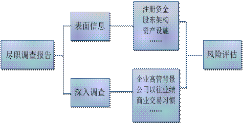 一份好的尽职调查报告,不应当只包括公司注册资金、股东架构、资产设施等公开渠道得到的表面信息,更应当包括企业高管背景、公司以往业绩、商业交易习惯等直接影响合作成败的真实信息。如图: