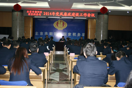 聘任仪式结束后,特约监察员随即开展工作,参加了朝阳区国税局党风廉政建设工作会议。