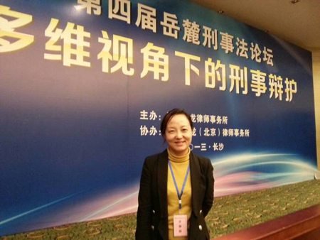 2013年12月14日,由湖南大学刑事法律科学研究中心主办的第四届岳麓刑事法论坛在长沙举行。京都律师事务所合伙人梁雅丽律师应邀出席。