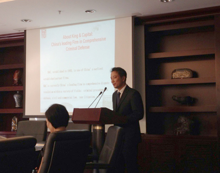 2013年9月11日,京都律师事务所与中国英国商会(英中贸易协会北京代表处)联合,举办了“在华跨国公司刑事诉讼和刑事风险防控”的讲座。