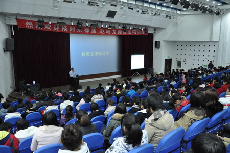杨照东律师针对当今社会就业难一直困扰着许多即将走出大学校门的学生的问题,结合自身经历,分享了刚走出校门的学生如何把握机遇、如何树立理想及正确处理现实与理想的差距等经验,勉励学生把握今天的机会,迎接未来的挑战。