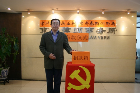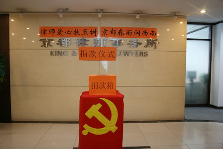 2010年4月21日,在主任田文昌律师的带领下,京都所举行了“律师爱心献玉树,京都春雨润西南”捐款仪式。党支部书记秦庆芳律师主持了该捐款仪式。