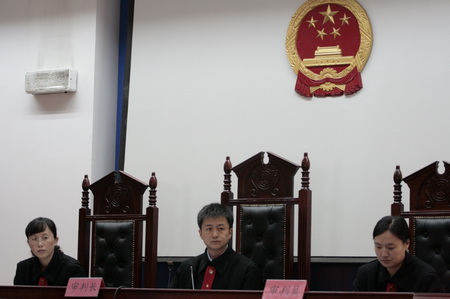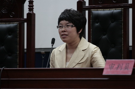 图为模拟法庭庭审现场