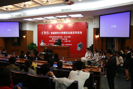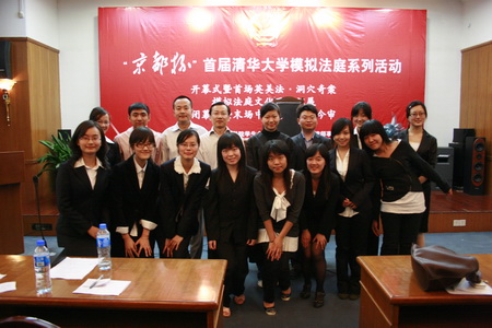 2009年5月15日晚19:00点,“京都杯”首届清华大学模拟法庭系列活动——开幕式暨首场英美法模拟法庭在清华大学法学院明理楼二层举行。到场嘉宾包括京都律师事务所合伙人常俊峰律师、王九川律师、清华大学法学院院长王振民教授和清华大学法学院易延友副教授。