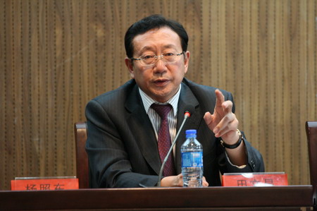 图为我所主任田文昌律师在论坛上就“许霆案”发表看法