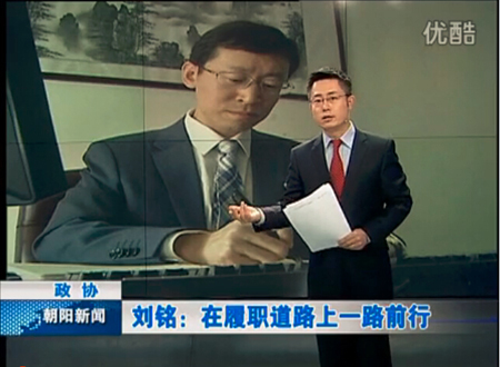 朝阳电视台等媒体通过录制“代表委员风采录”、新闻采访等形式对刘铭多年来履职奉献,所承担的社会责任进行了报导、肯定。